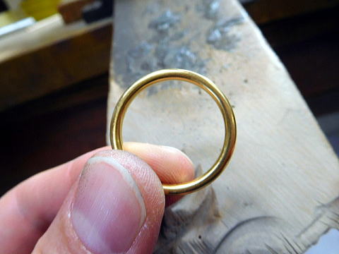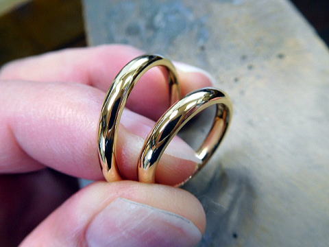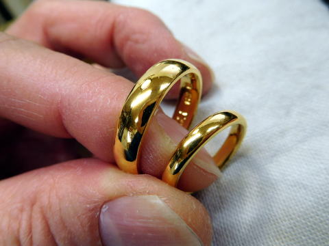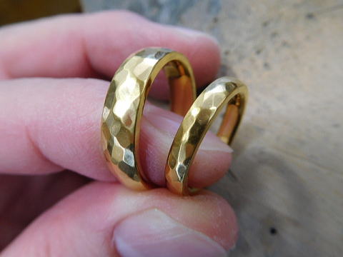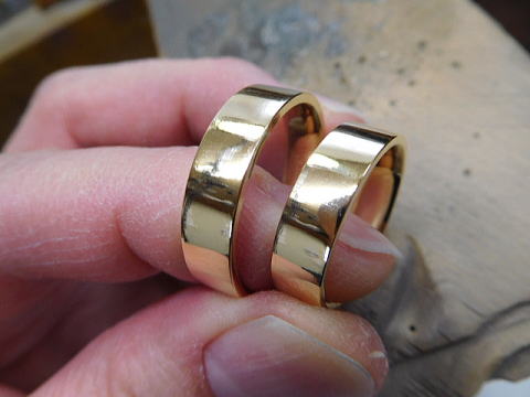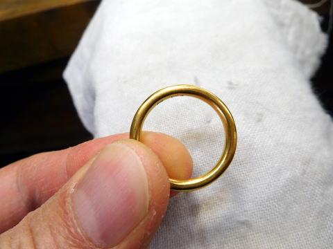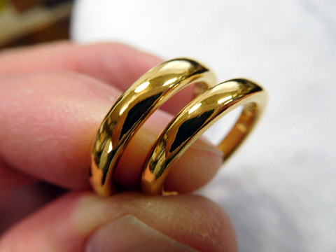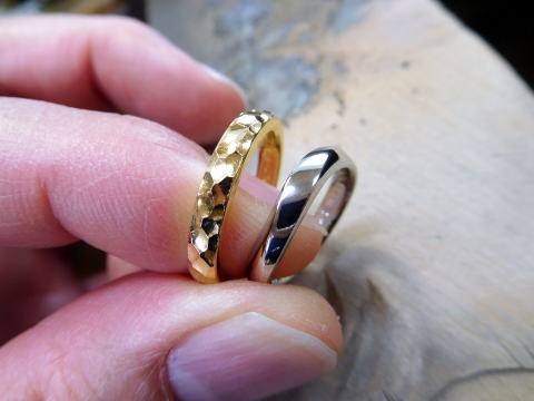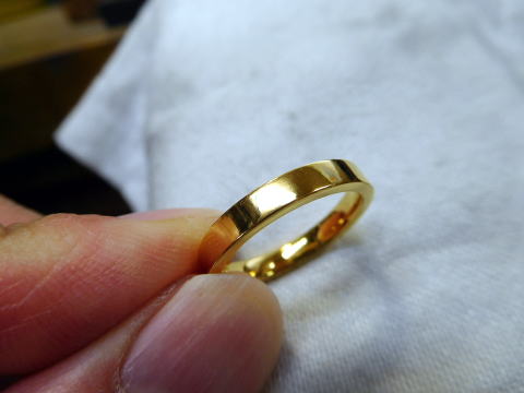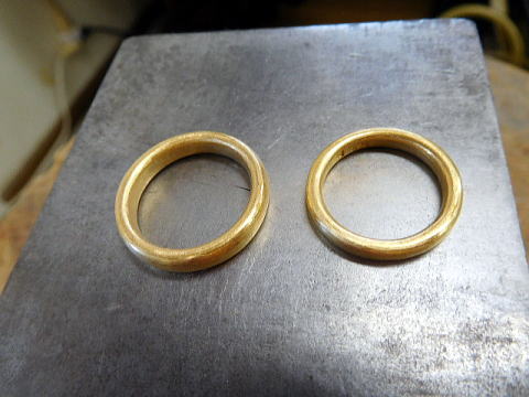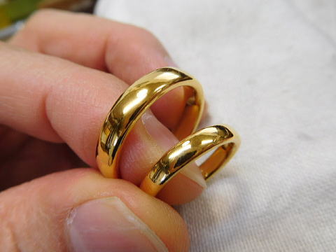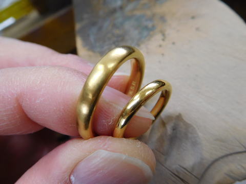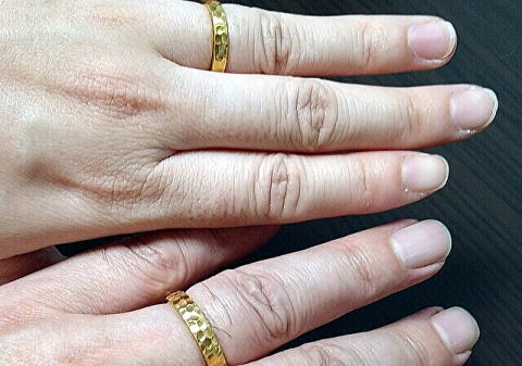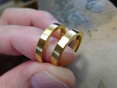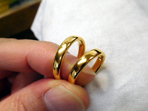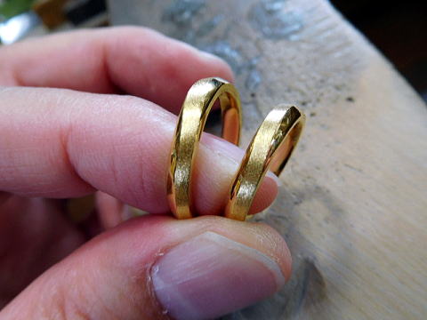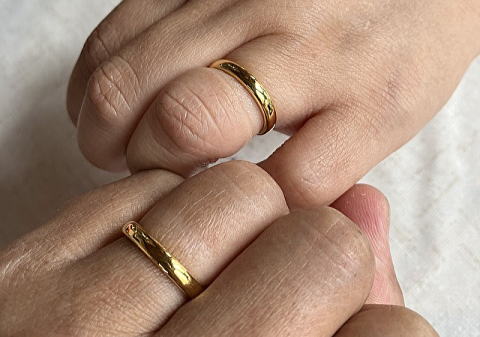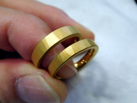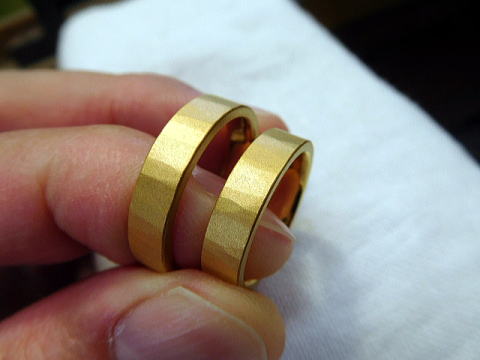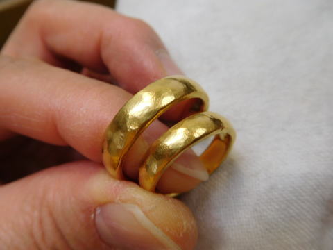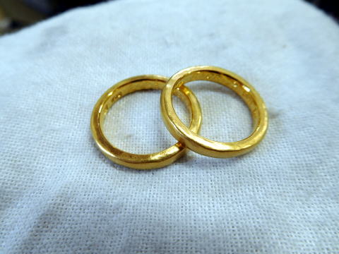 【奈良県・T様 2021/01 鍛造 純金リング(甲丸&平打ち】